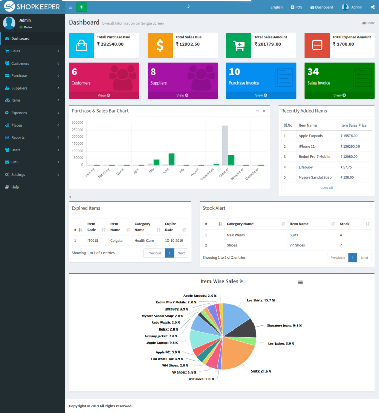 Very responsive template used, Advanced reports for review like Sales report, Purchase Reports, Sales Payments Reports, Purchase Payments Reports, Profit & Loss Reports, Expense reports, Customer reports, Suppliers reports, Stock Report.